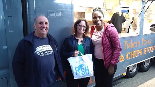 Lib Dem councillors Paul Potter, Paula Keay & Alcia Loach joined many residents of Box Hill in welcoming the Friday fish-and-chip van back to the village.